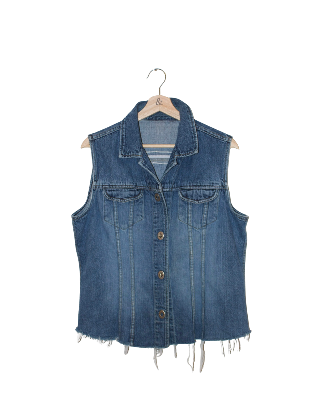 Super soft denim vest. Unique metal button detail. Medium to Large.