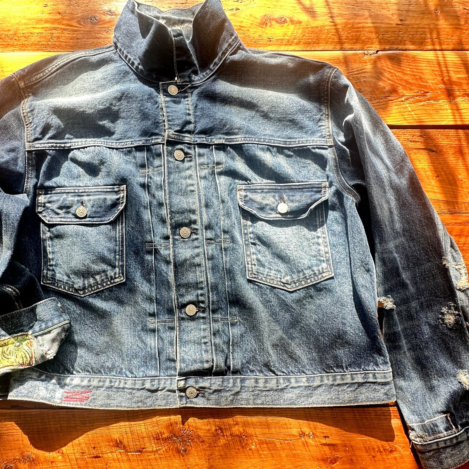 "THE SALVAGED ANGEL" Vintage Ralph Lauren denim, perfectly broken in through time and wear. One of One. Raw edged wings made with all recycled fabrics. A little rough, a little unpolished, perfect.
