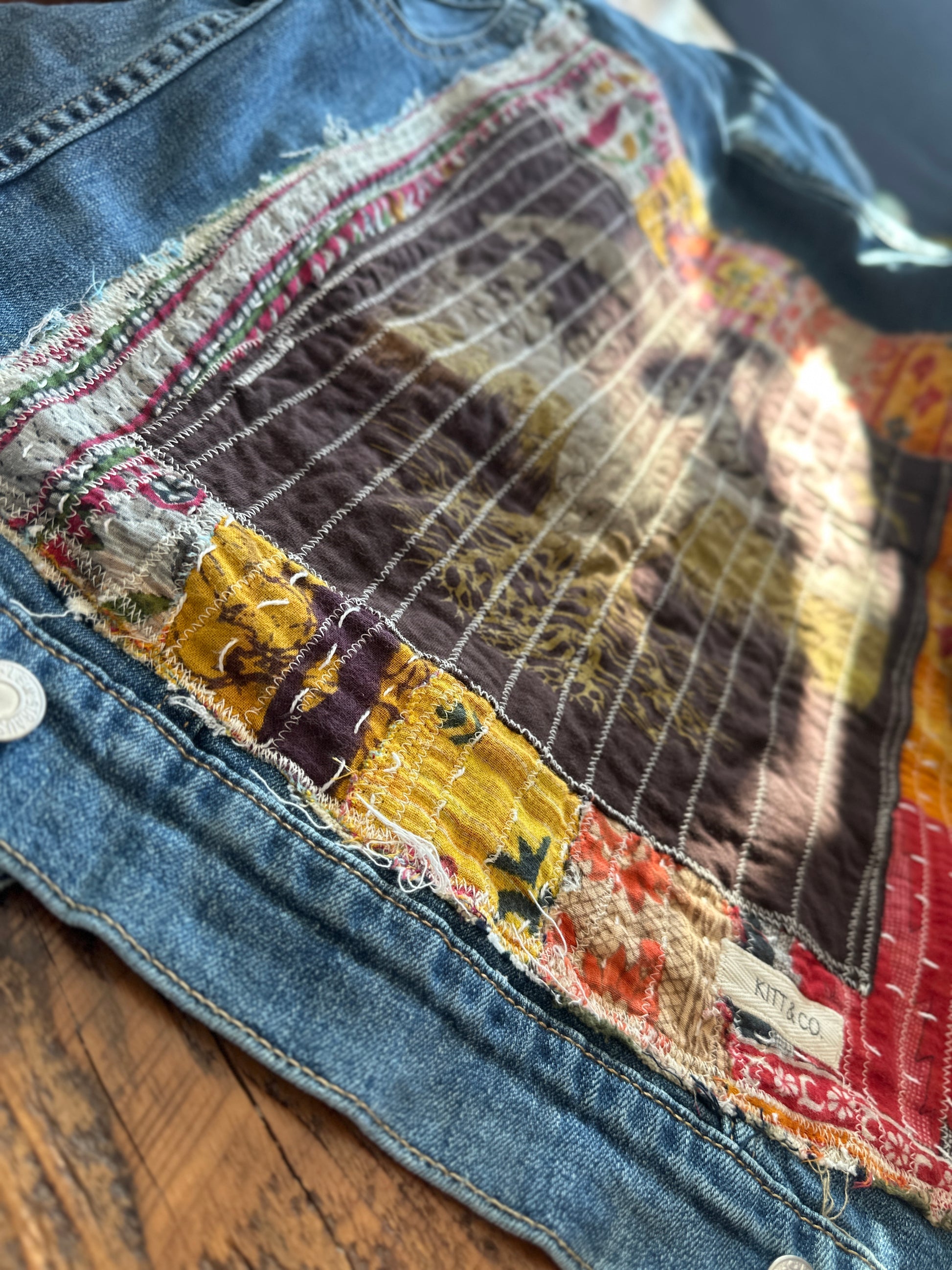 Small collection of handmade pieces from vintage denim. Thoughtfully selected fabrics and textiles. Perfectly distressed